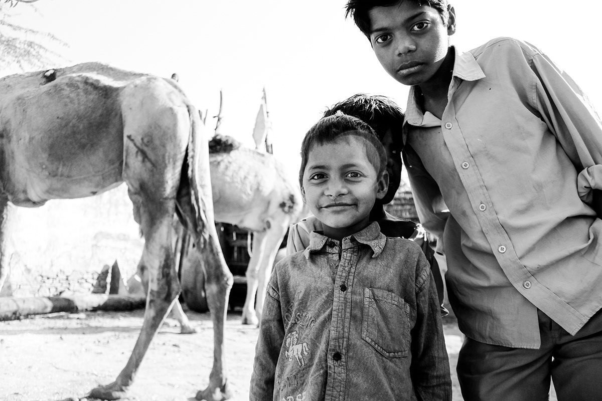 Camello, niño y aves, Pushkar, India 2012